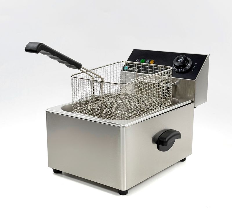 Cette friteuse professionnelle 6 litres permet de frire facilement pommes de terre, viandes, poissons, légumes ou fruits. Elle fonctionne avec des huiles végétales ou animales chauffées à température contrôlée. Ainsi, vous obtenez une friture dorée, croustillante et régulière.