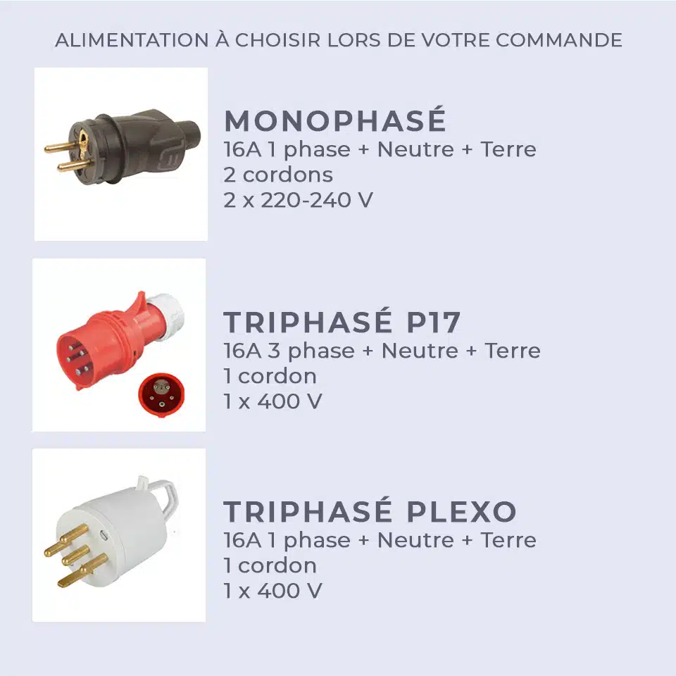 Type | Monophasé, Triphasé P17, Triphasé Plexo |